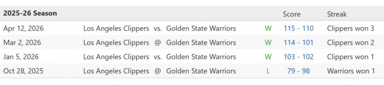 2026世界杯-附加赛会如何?本赛季常规赛交手战绩:快船3-1勇士
